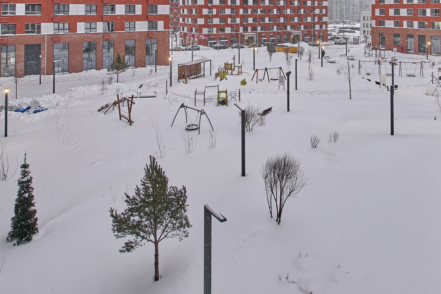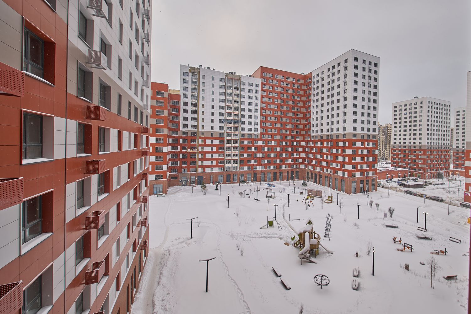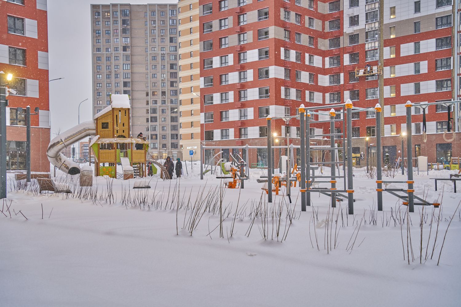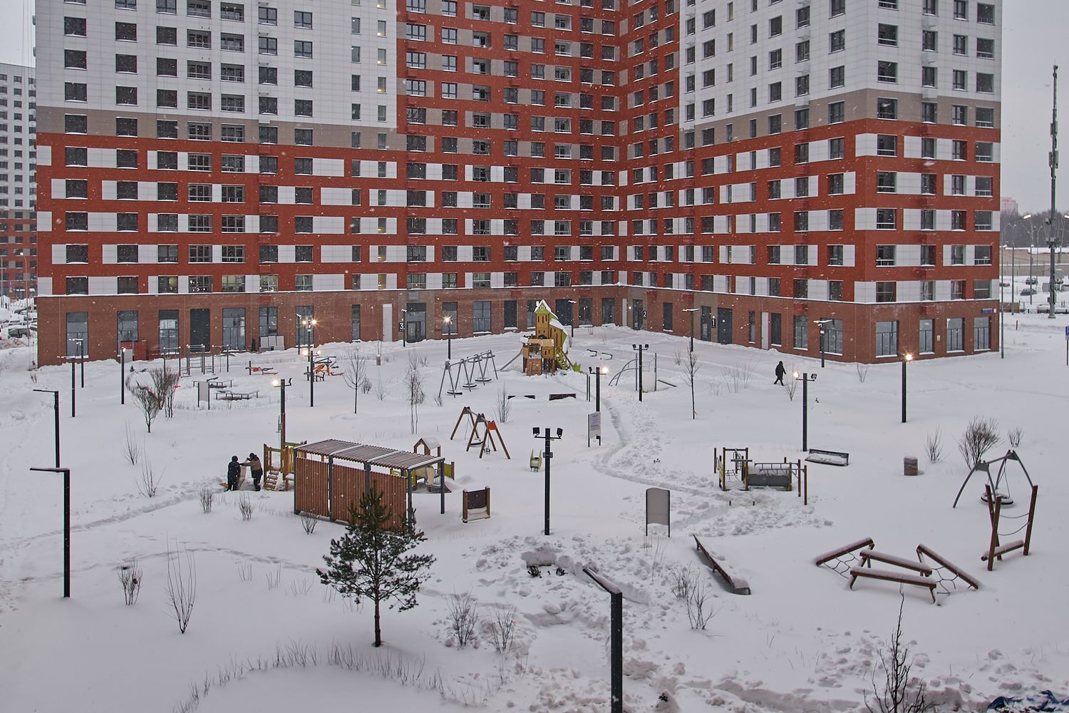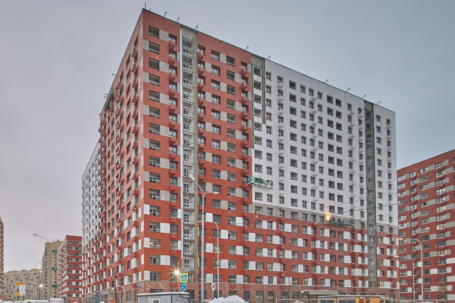 - Корпуса 35 и 39. Проводим устройство систем комфорта. Продолжаем монтаж навесного вентилируемого фасада и светопрозрачных конструкций. Продолжаем благоустраивать территорию.
