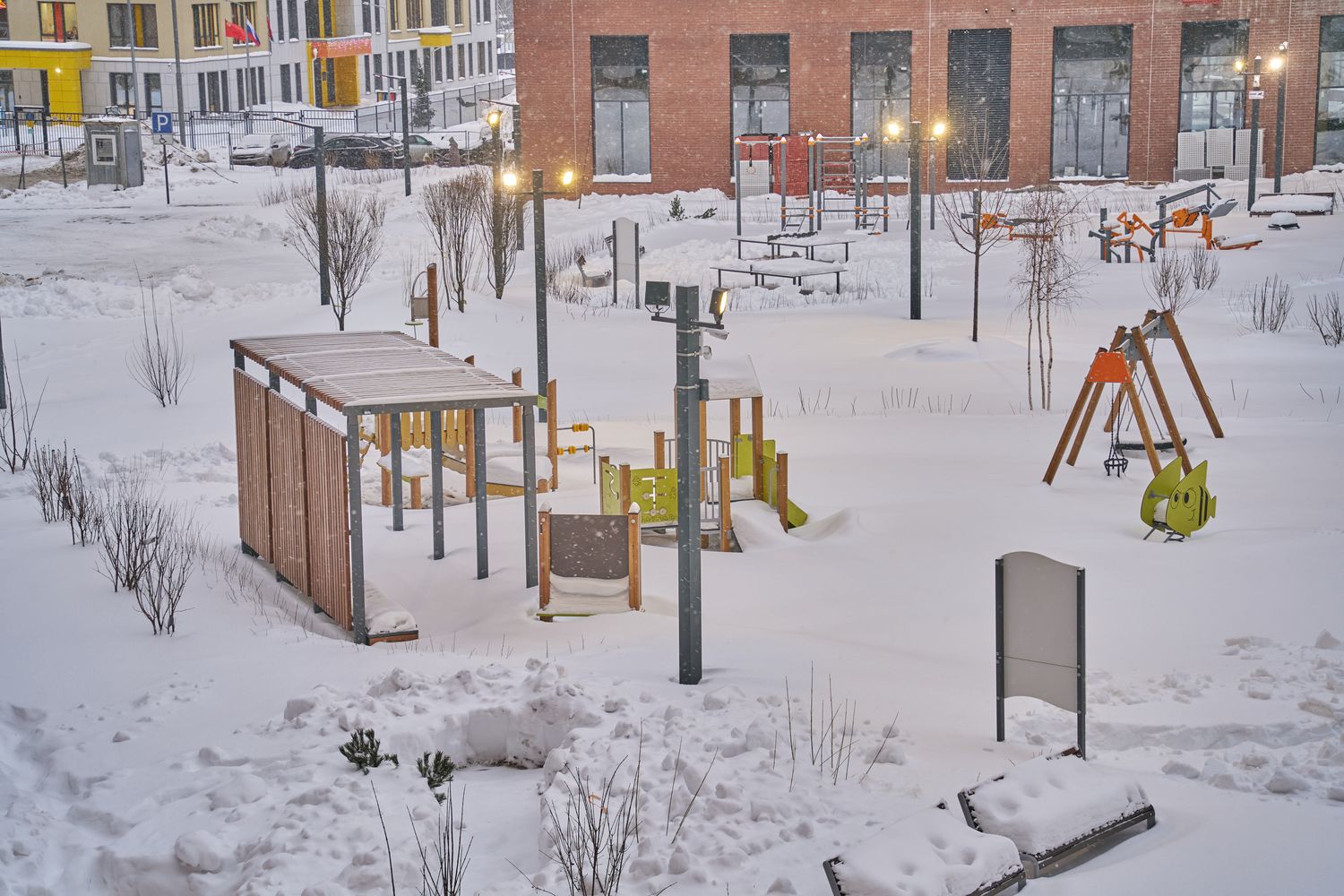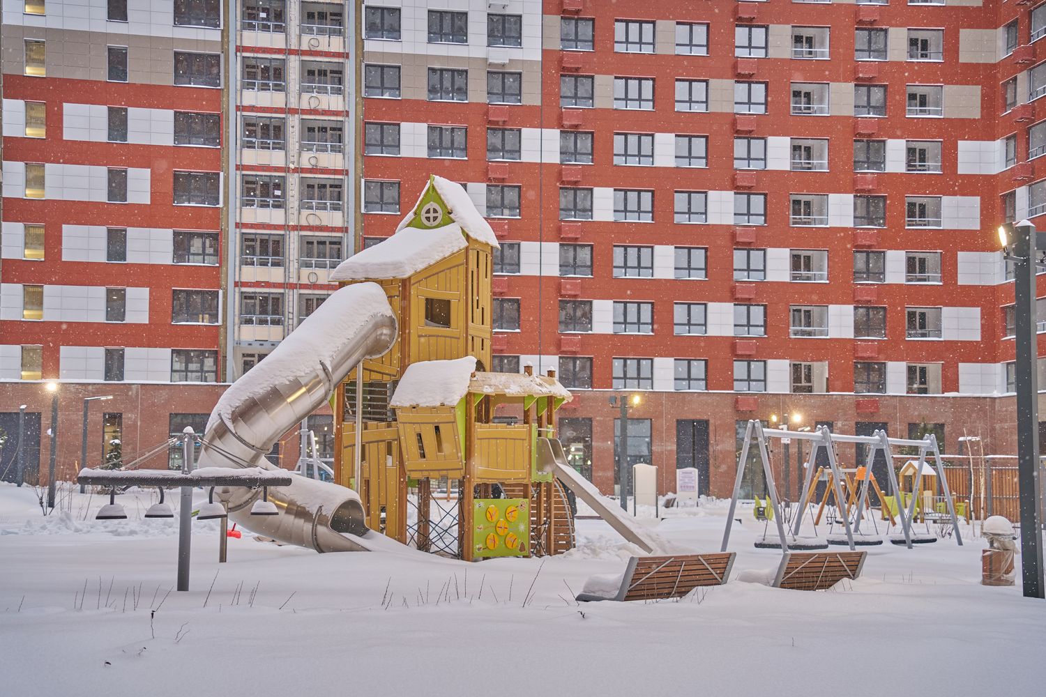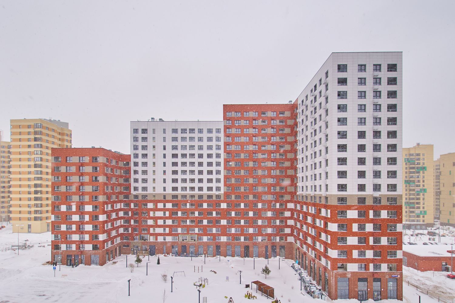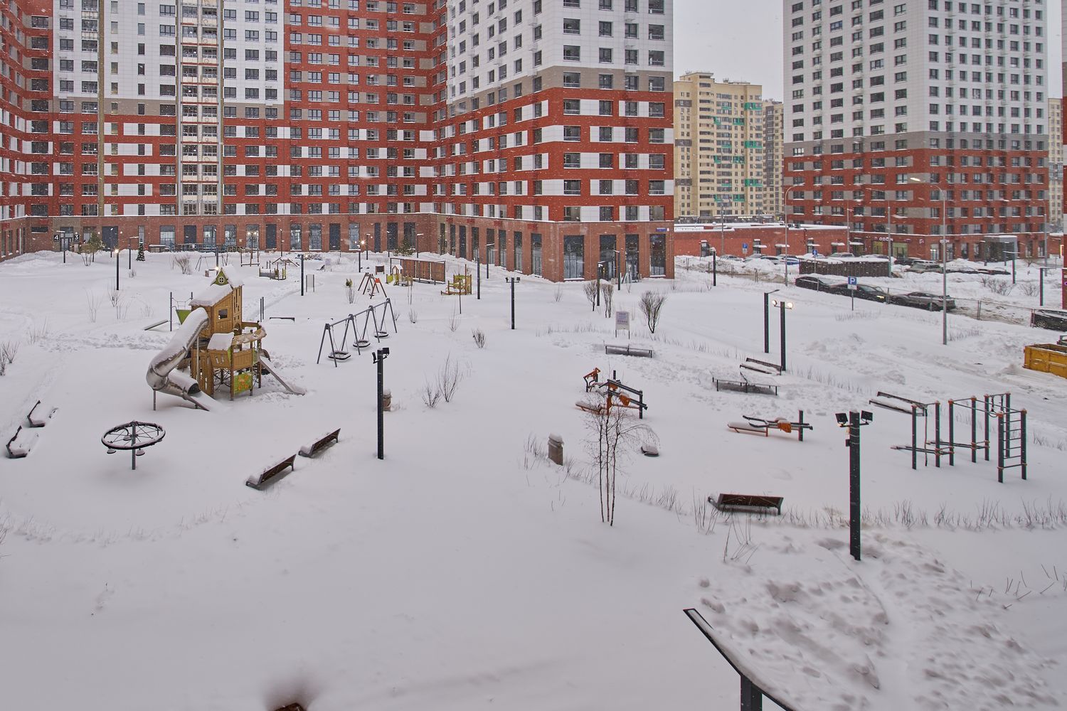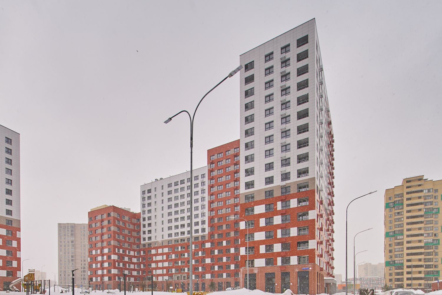 - Корпуса 35 и 39. Проводим устройство систем комфорта. Продолжаем монтаж навесного вентилируемого фасада и светопрозрачных конструкций. Продолжаем благоустраивать территорию.