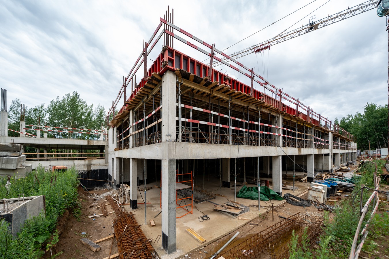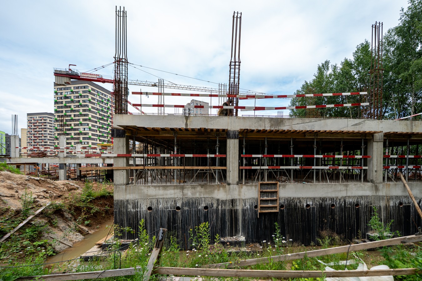- Корпуса 35 и 39. Проводим работы по устройству внутренних инженерных сетей. Продолжаем отделку технических помещений и квартир, монтаж навесного вентилируемого фасада и светопрозрачных конструкций. Готовим территорию под благоустройство и установку наружного освещения.