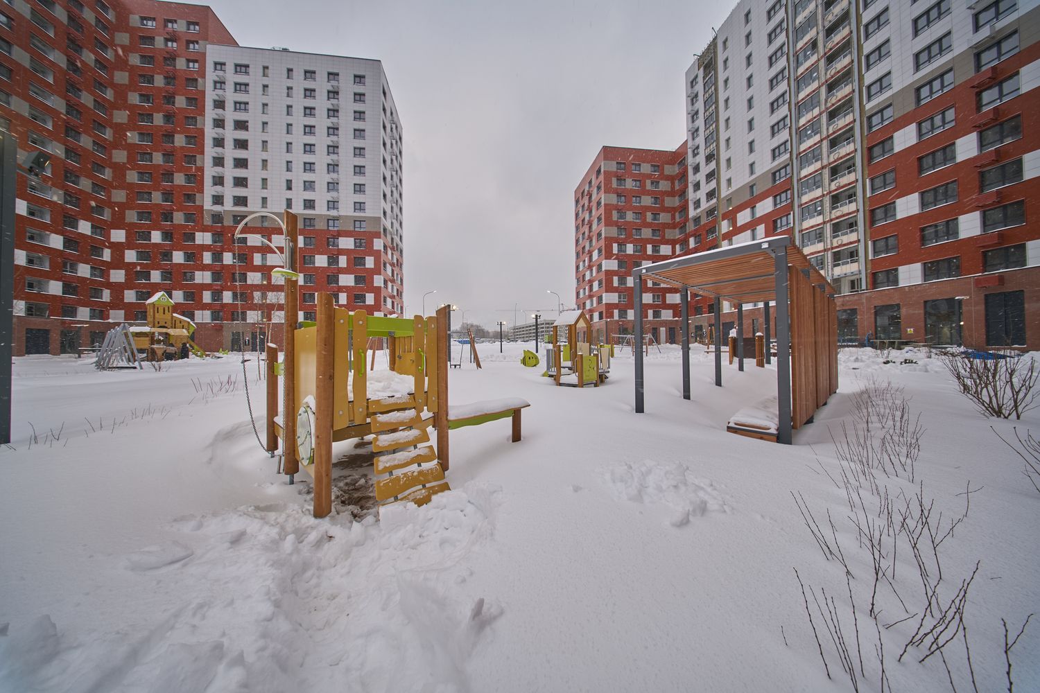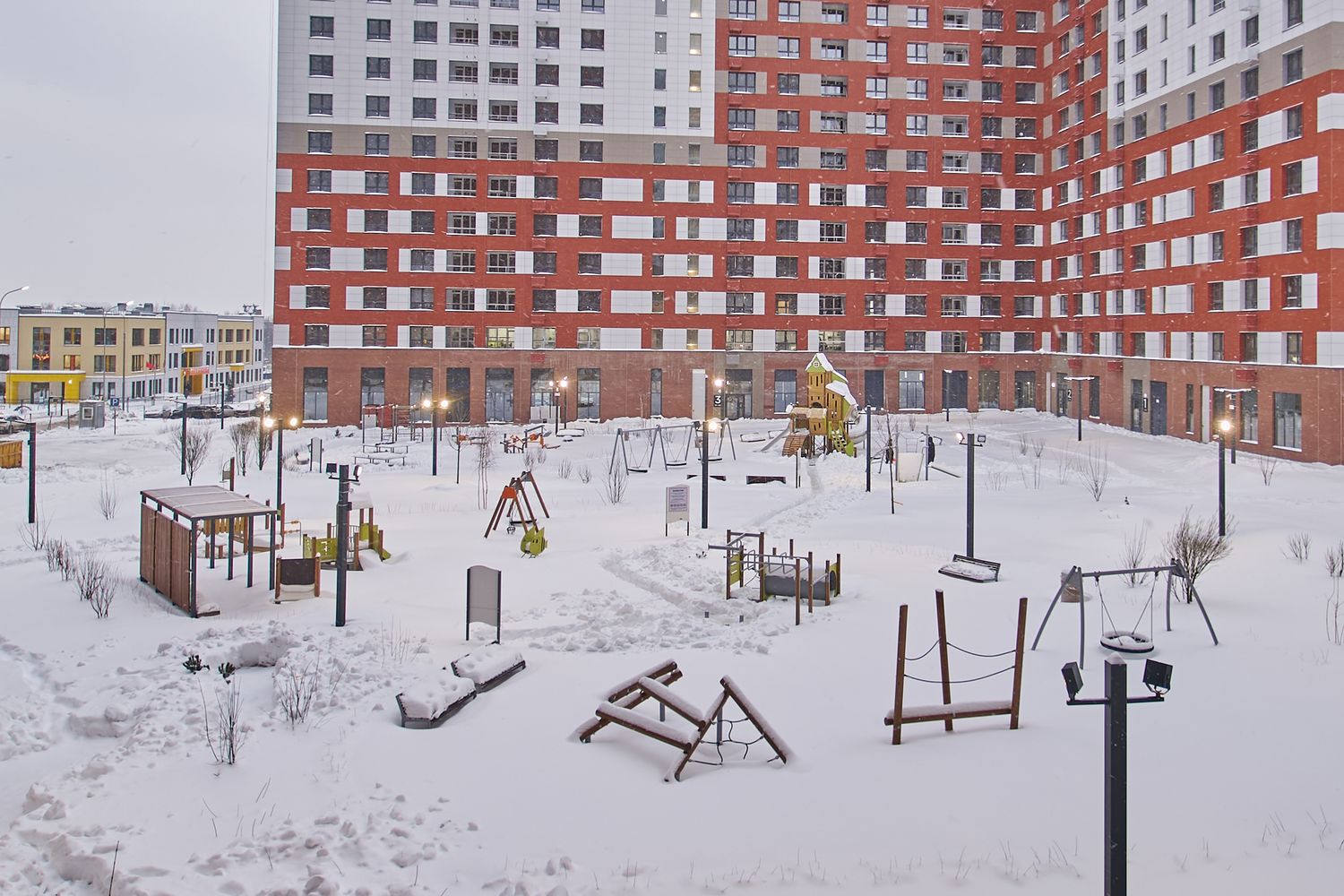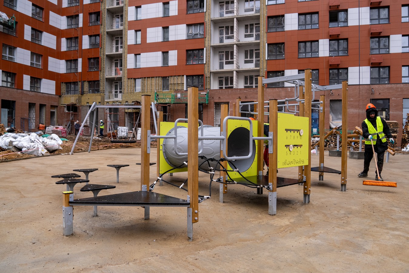 - Корпуса 41, 42, 43. Монтируем системы комфорта. Проводим отделку мест общего пользования и первых этажей. Продолжаем благоустройство придомовой территории