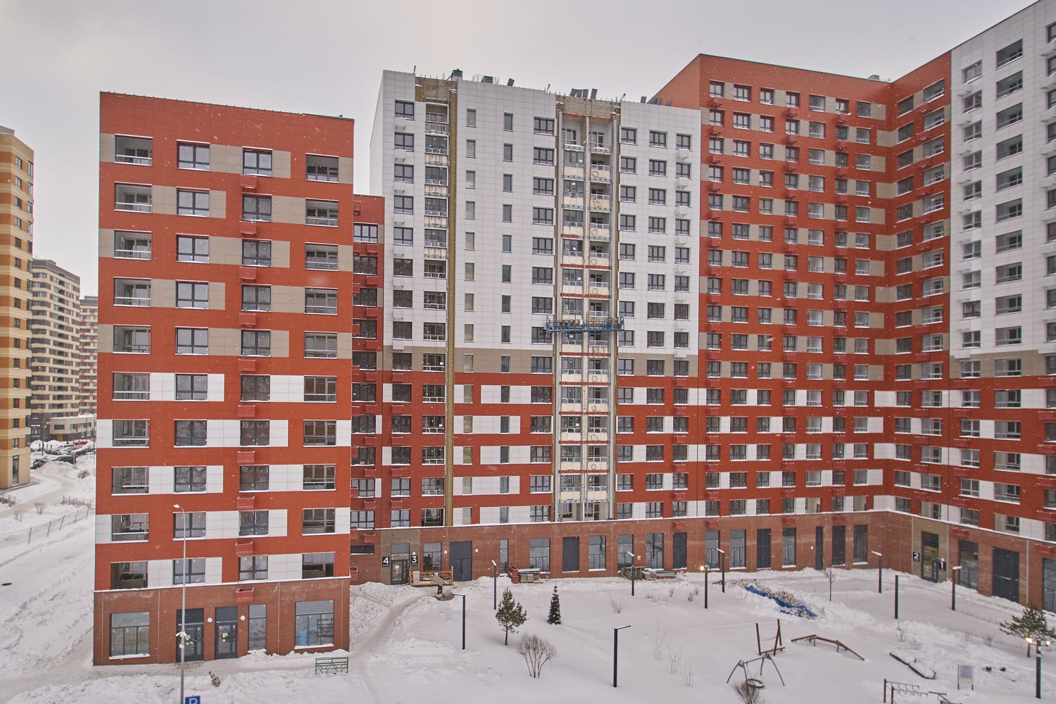 - Корпуса 35 и 39. Монтируем лифты и системы комфорта. Продолжаем отделку технических помещений и квартир, устройство навесного вентилируемого фасада и светопрозрачных конструкций. Готовим территорию под благоустройство.