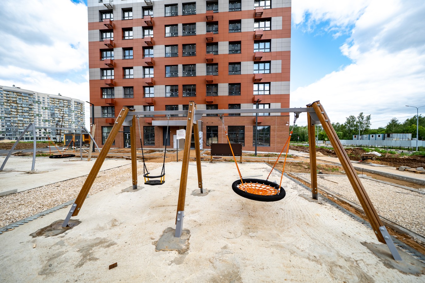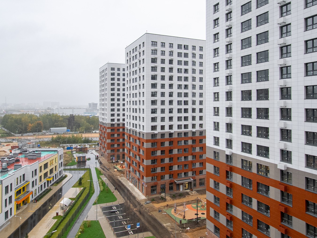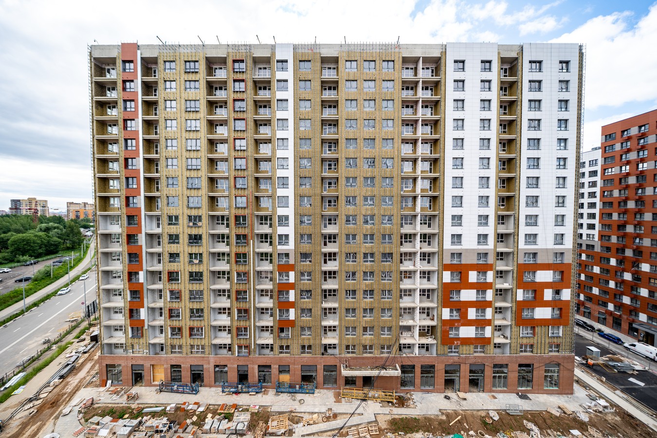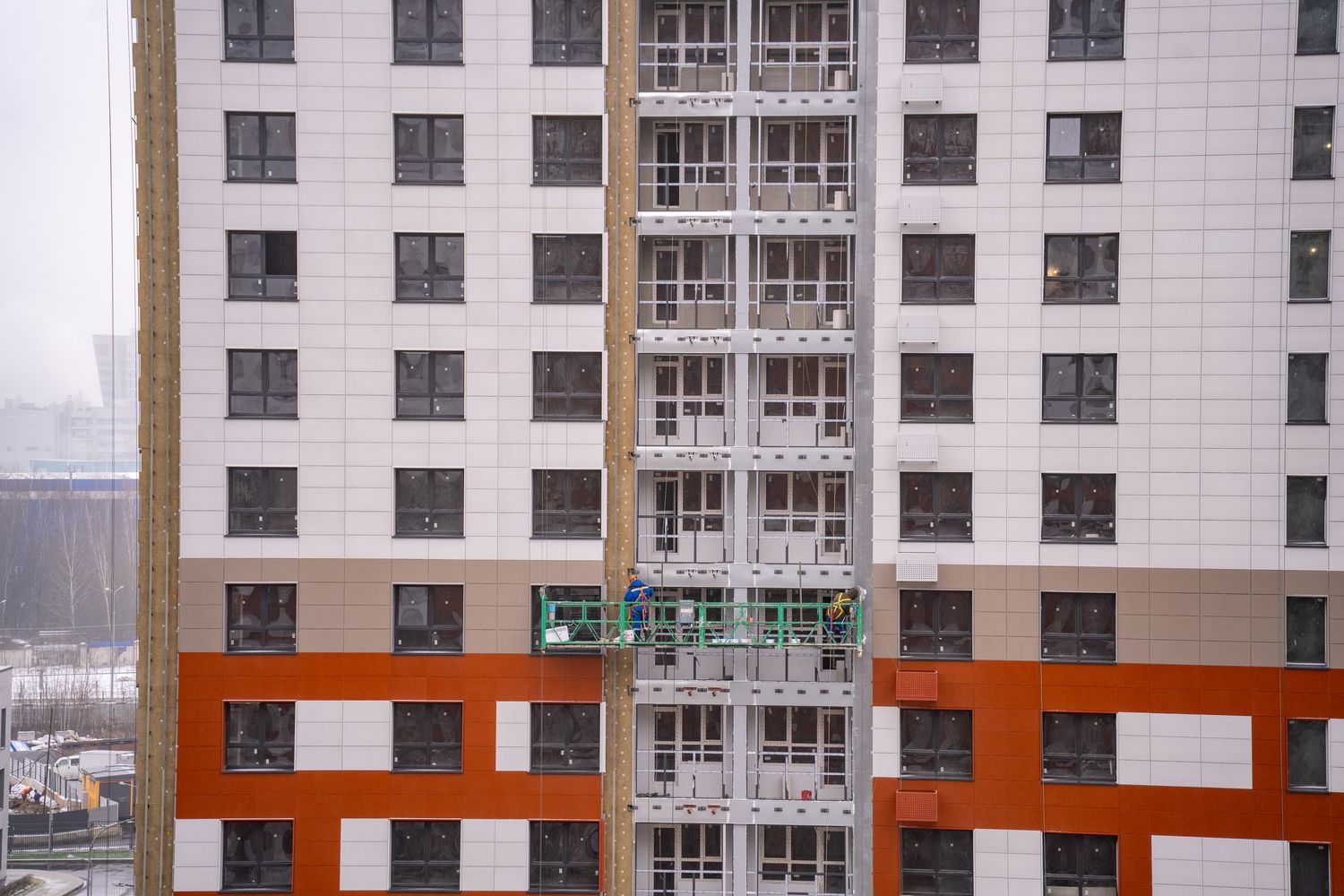- Корпуса 35 и 39: монтируем навесной фасад, рамы лоджий, витражные конструкции первых этажей, благоустраиваем придомовую территорию.