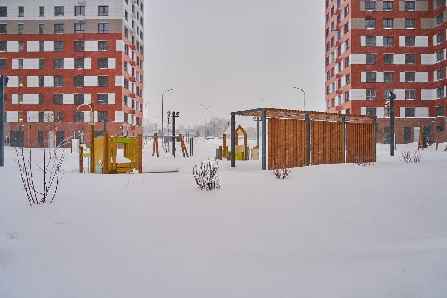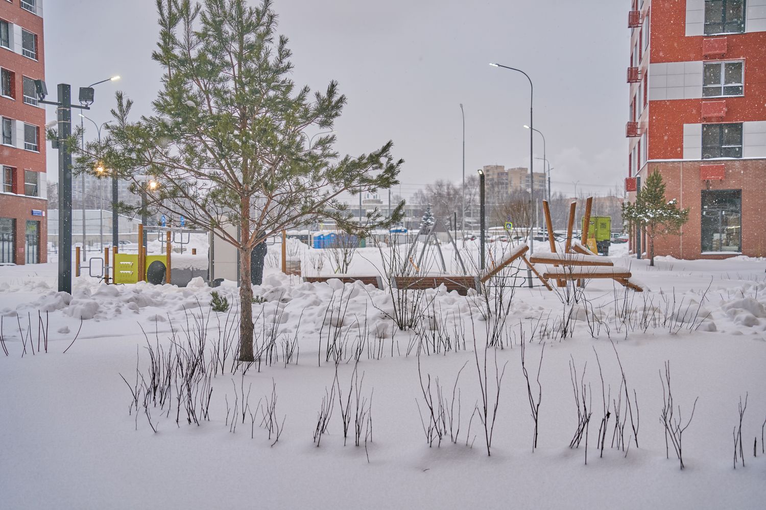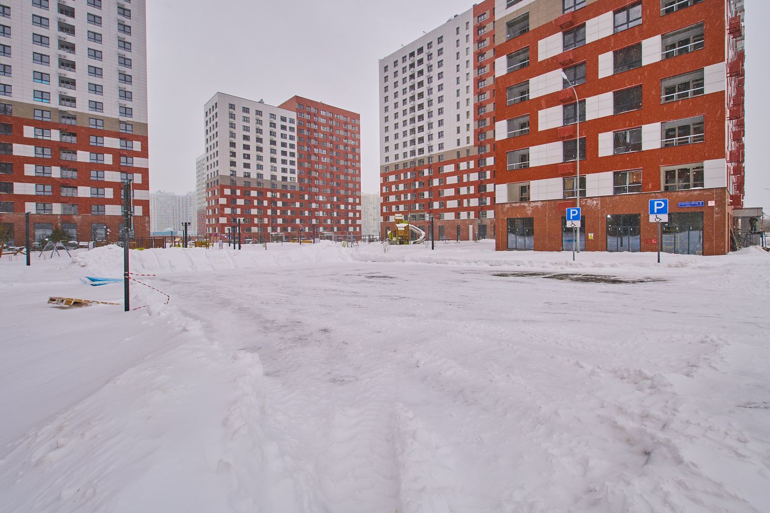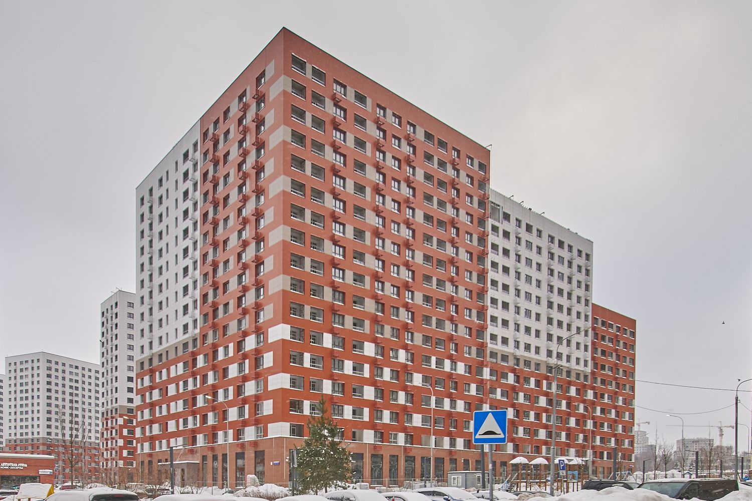 - Корпуса 35 и 39: монтируем навесной фасад, рамы лоджий, витражные конструкции первых этажей, благоустраиваем придомовую территорию.
