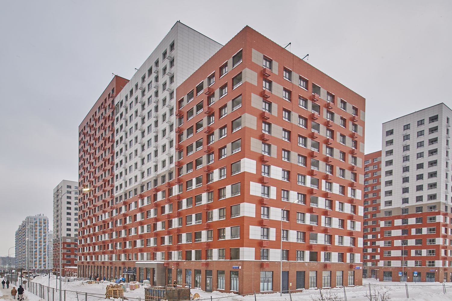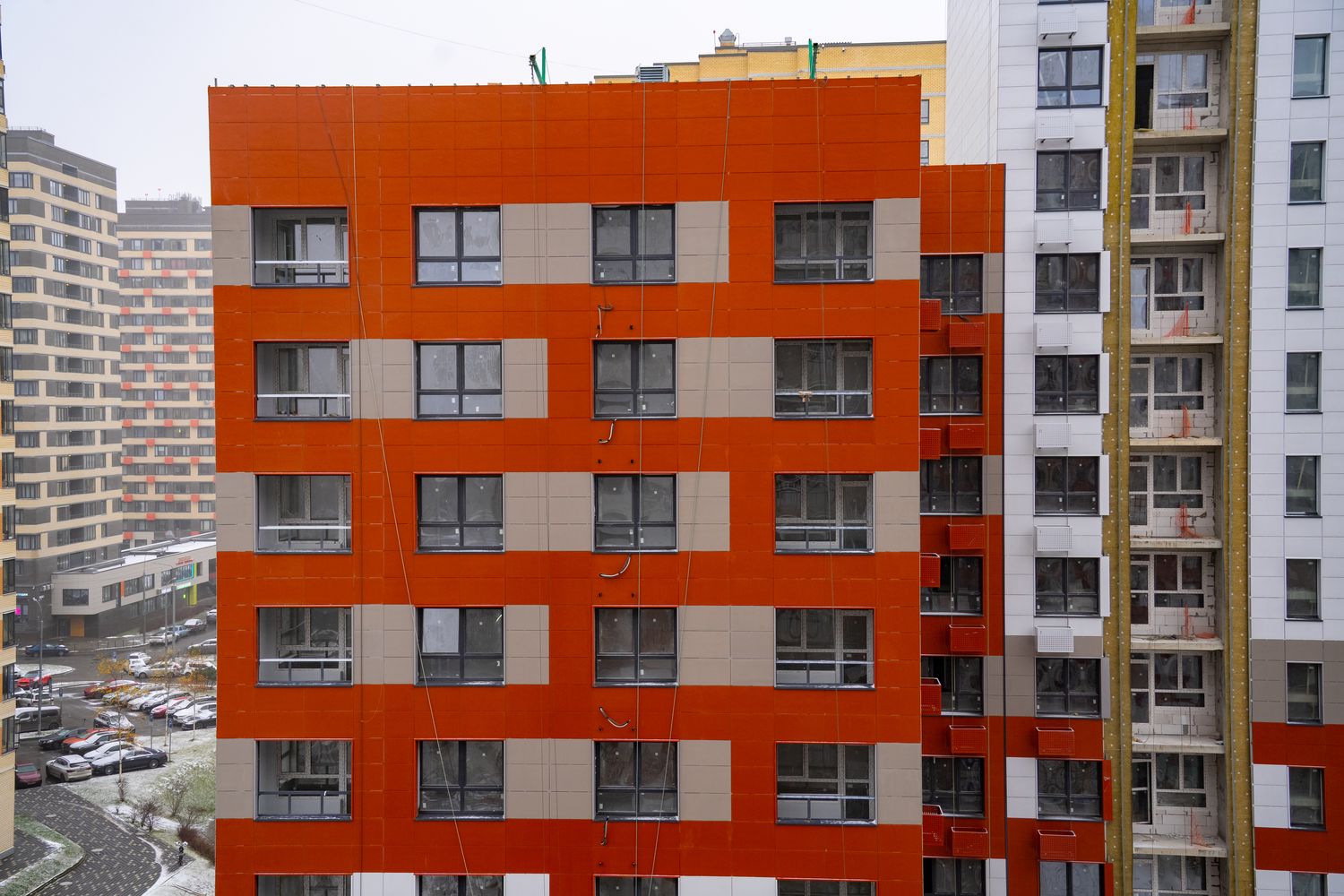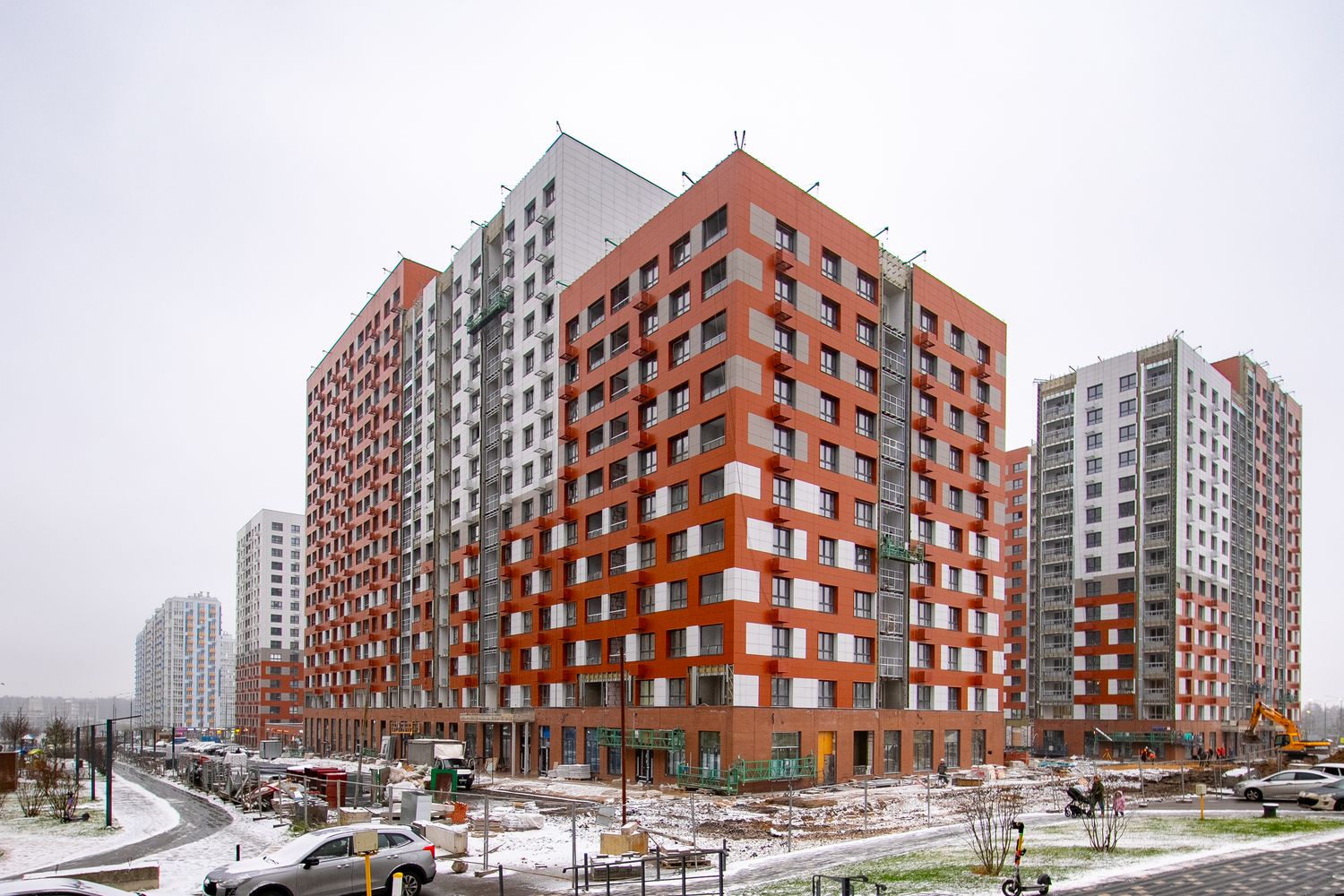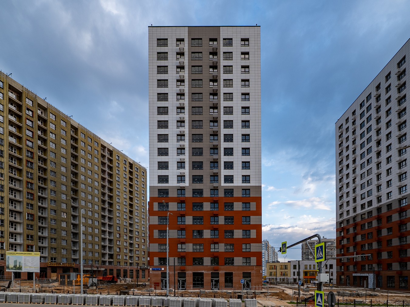 - Корпуса 35 и 39. Устраиваем внутренние инженерные сети. Продолжаем отделку мест общего пользования, монтаж навесного вентфасада и светопрозрачных конструкций. Благоустраиваем территорию.